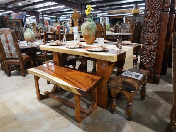 • Mesquite desk 6 ft with live edge and turquoise in lay stone Mesquite desk 6 ft with live edge and turquoise in lay stone
