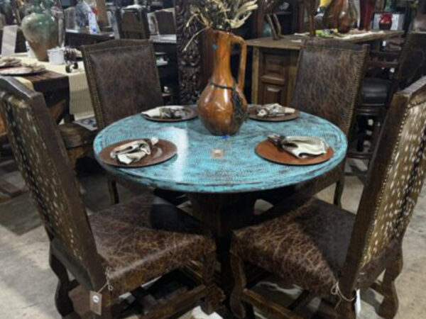• Mesquite desk 6 ft with live edge and turquoise in lay stone Mesquite desk 6 ft with live edge and turquoise in lay stone