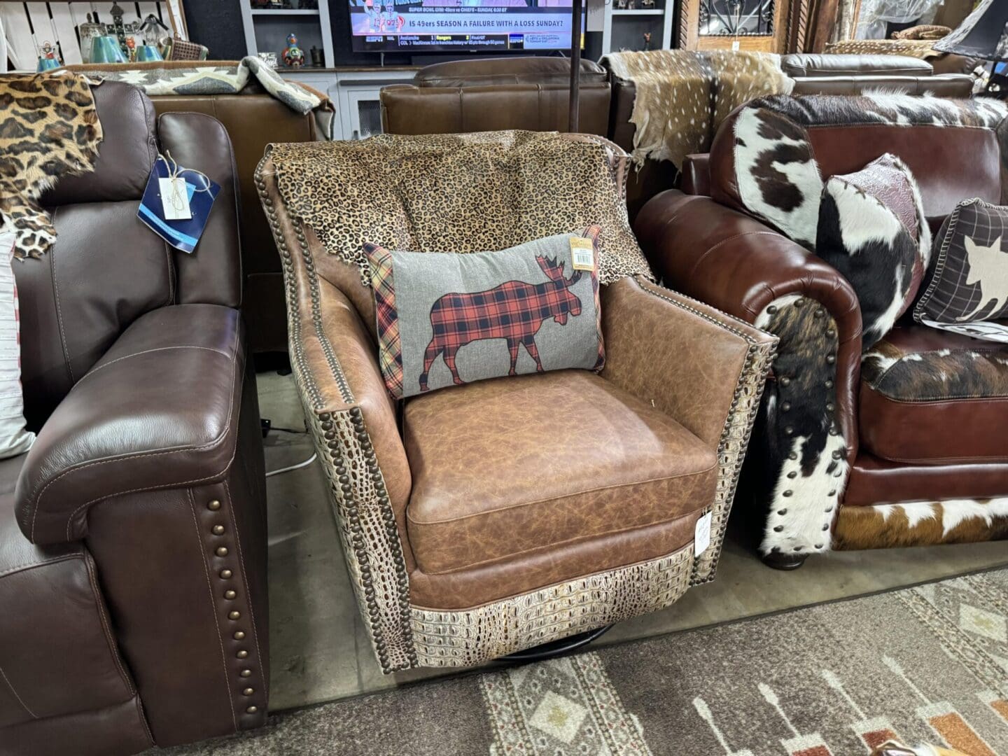 Elevate Your Home with the Luxurious Catherine Croc Puma Swivel-Glider Chair