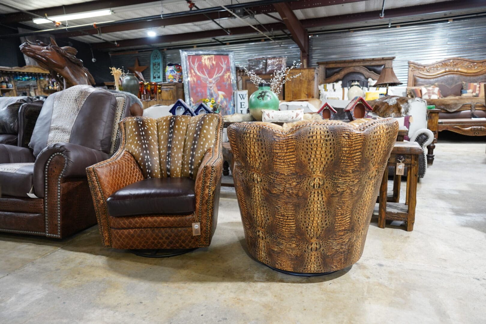 Cazadores Axis Hide Croc Leather Swivel Glider Chairs