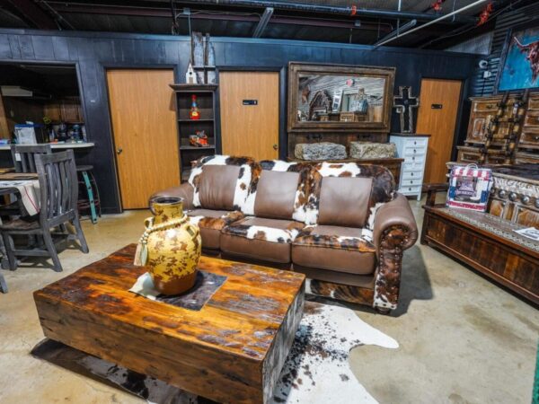 Three piece living room set customized with leather,Croc and White and Brown color cowhide